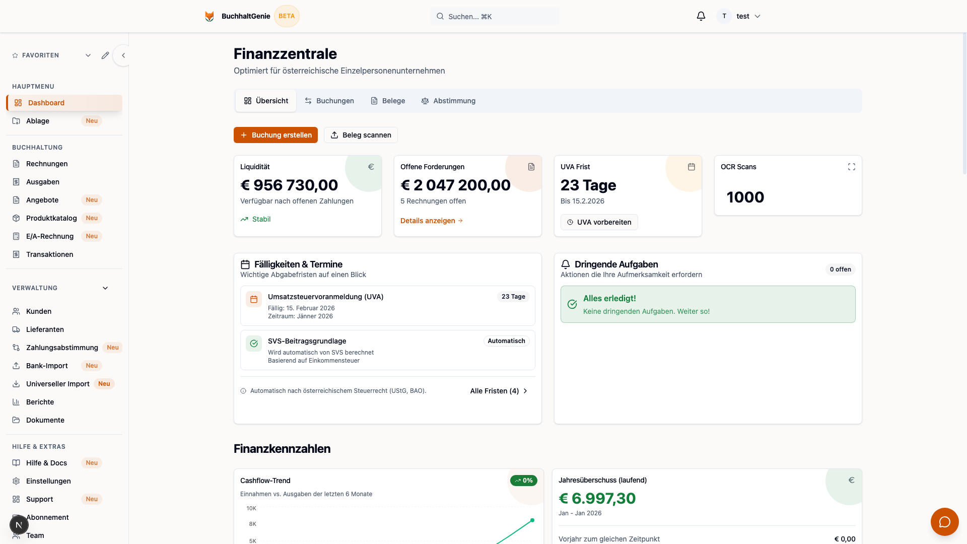 BuchhaltGenie ist eine Buchhaltungssoftware zur Unterstützung Ihrer Buchhaltung. Die Software ersetzt keine steuerliche Beratung durch einen befugten Steuerberater. Sie bleiben für die Richtigkeit Ihrer Angaben verantwortlich.